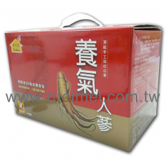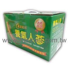 養氣人蔘手提盒養-綠READ MORE一般年節用送禮最佳的盒型選擇,好處不需再額外製作手提袋,即可讓顧客提著走。 -